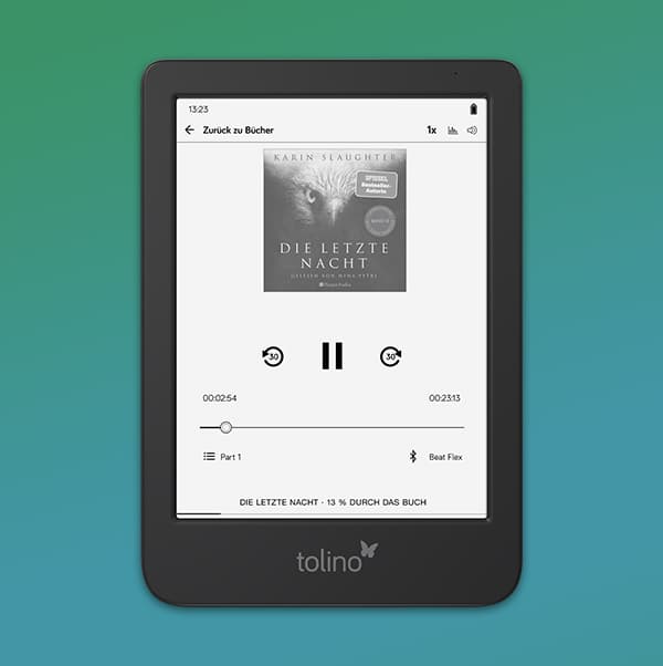Jetzt können Sie Ihre Lieblingsgeschichten nicht nur lesen, sondern auch hören – genießen Sie Ihre Wunschtitel als Hörbuch mit der kabellosen Wiedergabe via Bluetooth über Kopfhörer