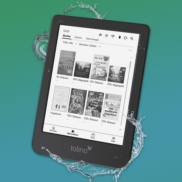 Entdecken Sie die Freiheit des Lesens mit dem wassergeschützten tolino shine! In der Badewanne oder am Pool können Sie buchstäblich in Geschichten eintauchen.
