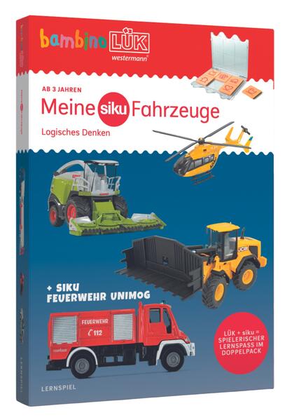 Mit dem bambinoLÜK-Set "Meine siku Fahrzeuge - Logisches Denken" erleben Kinder ab 3 Jahren spannende Zuordnungsübungen rund um die beliebten Modellfahrzeuge von siku. Vom Polizeiauto über den Holztransporter bis hin zum Maishäcksler ist alles vertreten, was sich auf Straßen, Äckern und in der Luft bewegt. Neben dem gleichnamigen Übungsheft und dem bambinoLÜK-Kontrollgerät enthält das Set als besonderes Extra einen siku Feuerwehr Unimog - für noch mehr Spiel- und Lernspaß.