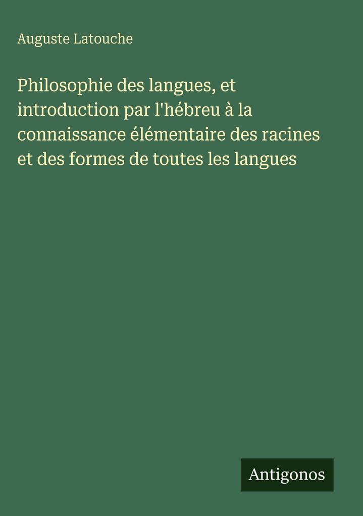 Es wurden noch keine Bewertungen abgegeben. Schreiben Sie die erste Bewertung zu "Philosophie des langues, et introduction par l'hébreu à la connaissance élémentaire des racines et des formes de toutes les langues" und helfen Sie damit anderen bei der Kaufentscheidung.