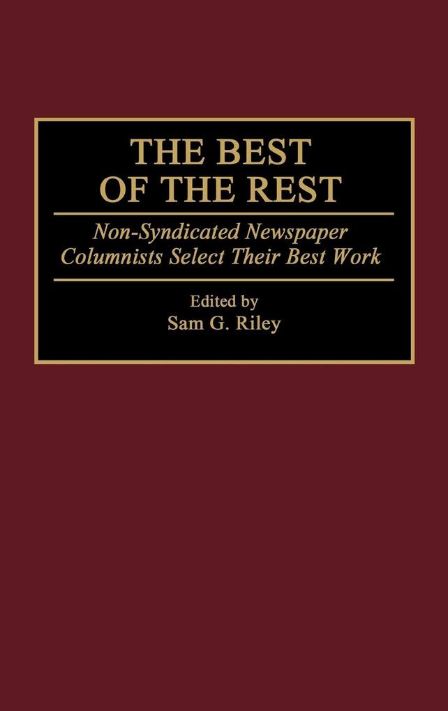 The Best of the Rest presents the work of 77 of America's most talented local newspaper columnists from 41 states. They represent the rest because editor Sam G. Riley has excluded nationally syndicated columnists in order to expose to a wider audience many equally talented columnists whose fame generally is localized. The columnists chosen for inclusion were nominated by a nationwide panel of 100 journalism professors--two from each state. Those writers who agreed to participate either self-selected their two favorite columns or sent a larger sampling for the editor's choice. For this first such book on local columnists, Riley has concentrated on news columnists, personal or general interest columnists, and humor columnists, exempting those who write more or less exclusively on topical areas, such as sports, business and finance, fashion, or travel.