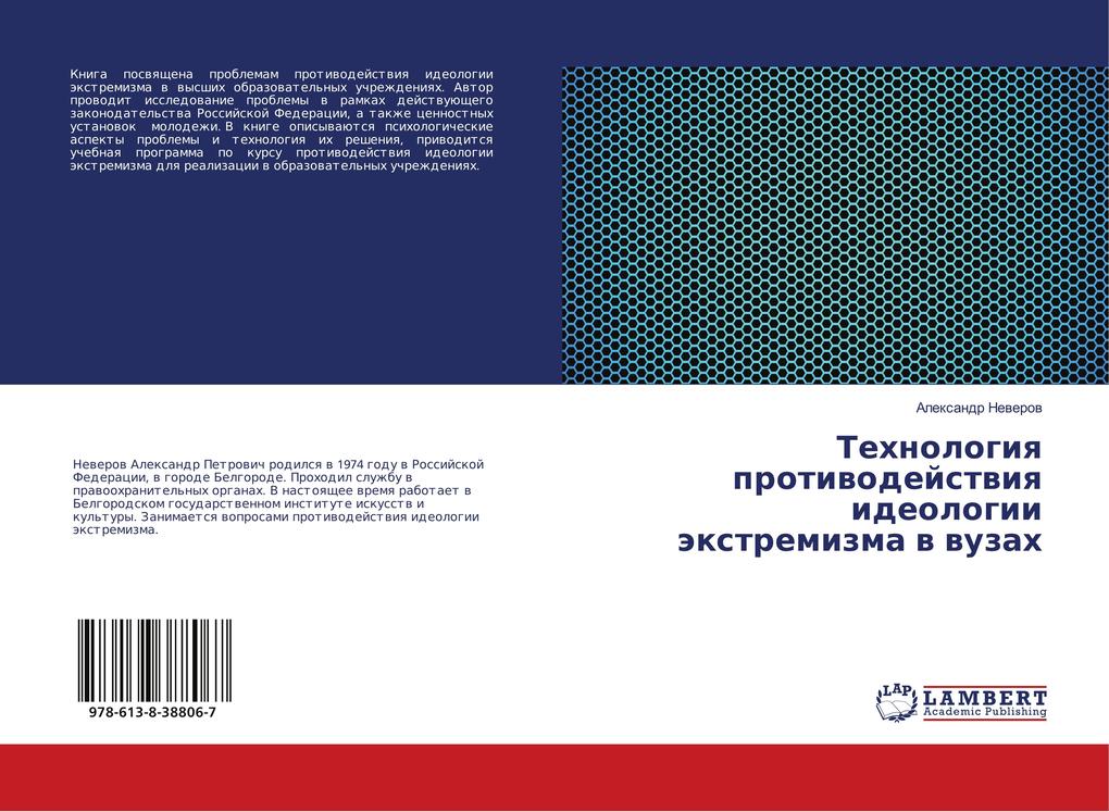 Kniga poswqschena problemam protiwodejstwiq ideologii äxtremizma w wysshih obrazowatel'nyh uchrezhdeniqh. Awtor prowodit issledowanie problemy w ramkah dejstwuüschego zakonodatel'stwa Rossijskoj Federacii, a takzhe cennostnyh ustanowok molodezhi. V knige opisywaütsq psihologicheskie aspekty problemy i tehnologiq ih resheniq, priwoditsq uchebnaq programma po kursu protiwodejstwiq ideologii äxtremizma dlq realizacii w obrazowatel'nyh uchrezhdeniqh.