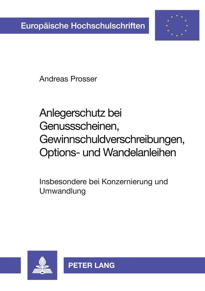 Aus dem Inhalt: Anlegerschutz bei Genussscheinen Gewinnschuldverschreibungen Options- und Wandelanleihen - insbesondere bei Konzernierung und Umwandlung.