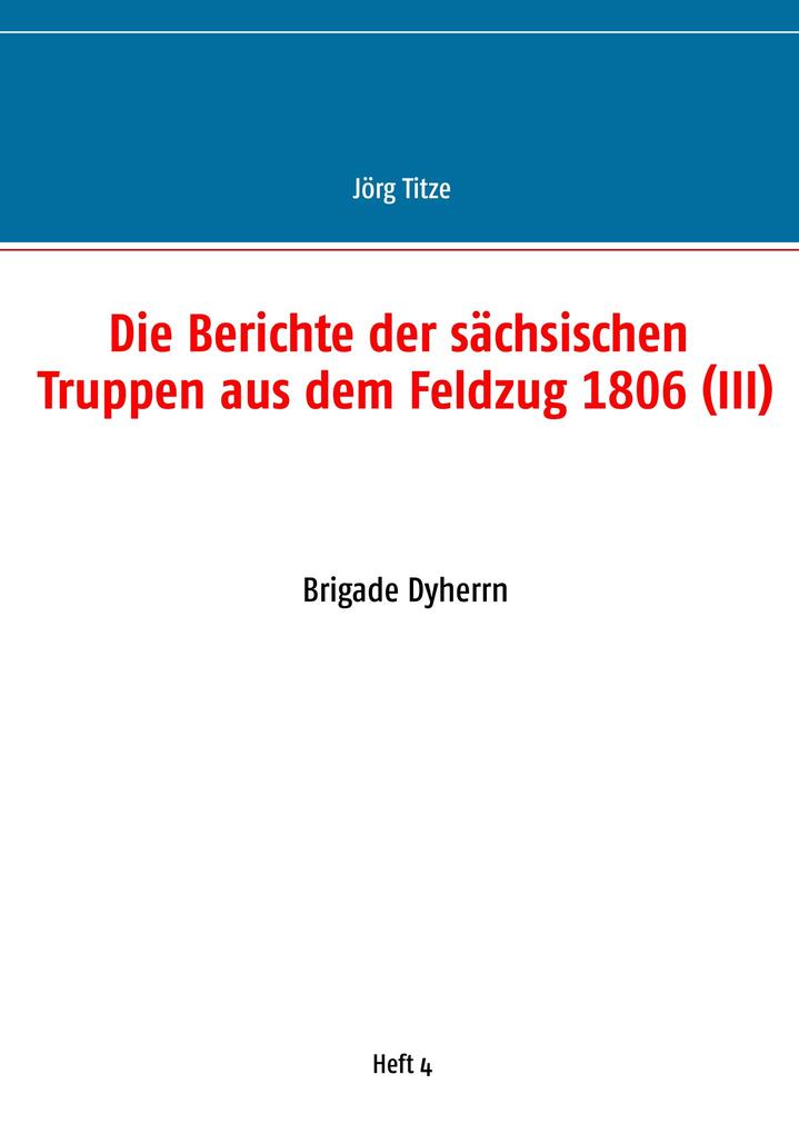 Dieses Heft beinhaltet die Berichte der Brigade Dyherrn (Regimenter Bevilaqua/2. Bataillon, von Low und von Niesemeuschel, Batterie Bonniot) von Anfang Oktober 1806 bis zur Wiedereinrückung in die Standquartiere. Ergänzt werden die Berichte mit den zum besseren Gesamtverständnis notwendigen Ausführungen zur Ordre de Bataille, den Truppenorganisationen und -formationen.