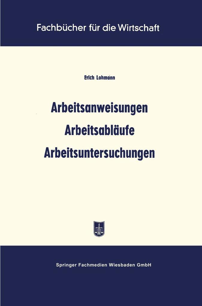 A. Arbeitsanweisungen. - B. Arbeitsabläufe. - C. Arbeitsuntersuchungen. - Schlußbetrachtung. - Schrifttum.