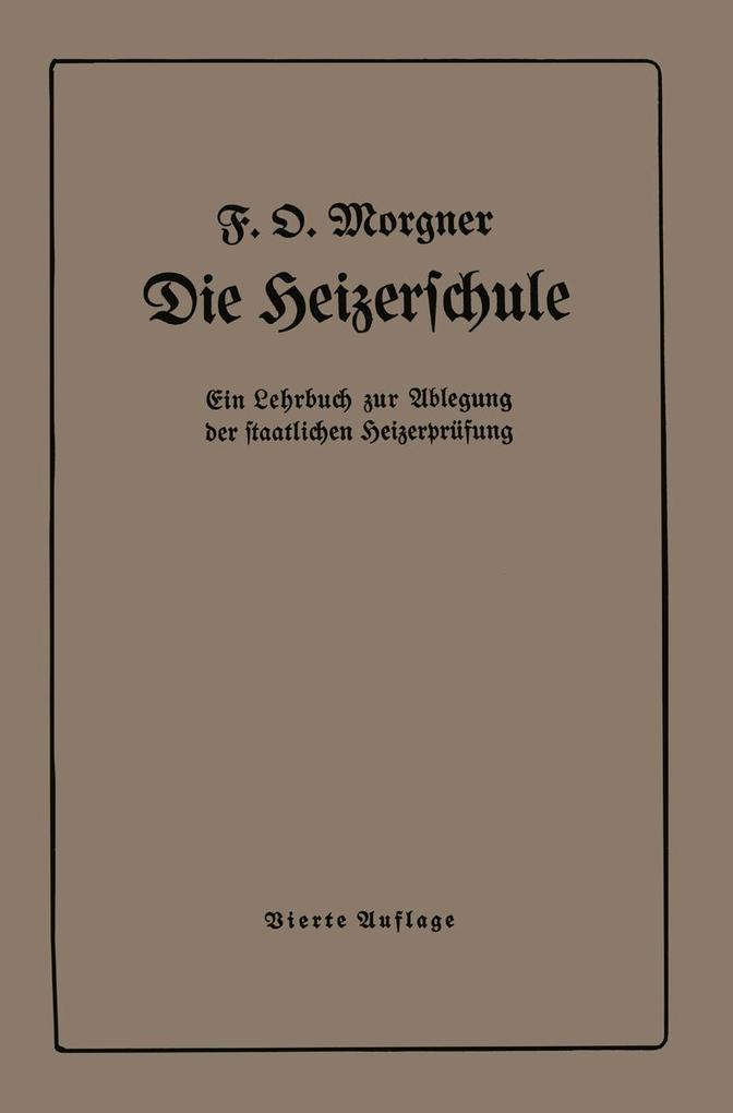 1. Die Brennstoffe im allgemeinen. - 2. Die Verbrennungsvorgänge. - 3. Die Zusammensetzung und die Untersuchung der Heizgase. - 4. Die einzelnen Brennstofforten. - 5. Die Bedienung des Kesselfeuers. - 6. Die Feuerungsanlagen der Dampfkessel. - 7. Die rauchverhütenden Dampfkesselfeuerungen. - 8. Die Feuerzüge und der Schornstein. - 9. Die Verhütung und Beseitigung des Kesselsteins. - 10. Die Verdampfung des Wassers. - 11. Beschreibung und Bedienung der hauptsächlichsten Kesselarten. - 12. Bau und Reparatur der Dampfkessel. - 13. Die Ausrüstung des Dampfkessels. - 14. Verhaltungsregeln für Dampkesselheizer. - 15. Wärmewirtschaft und Kesselhauskontrolle. - 16. Die Niederdruckdampfkessel. - Sonstige Zubehörteile zur Dampfanlage.