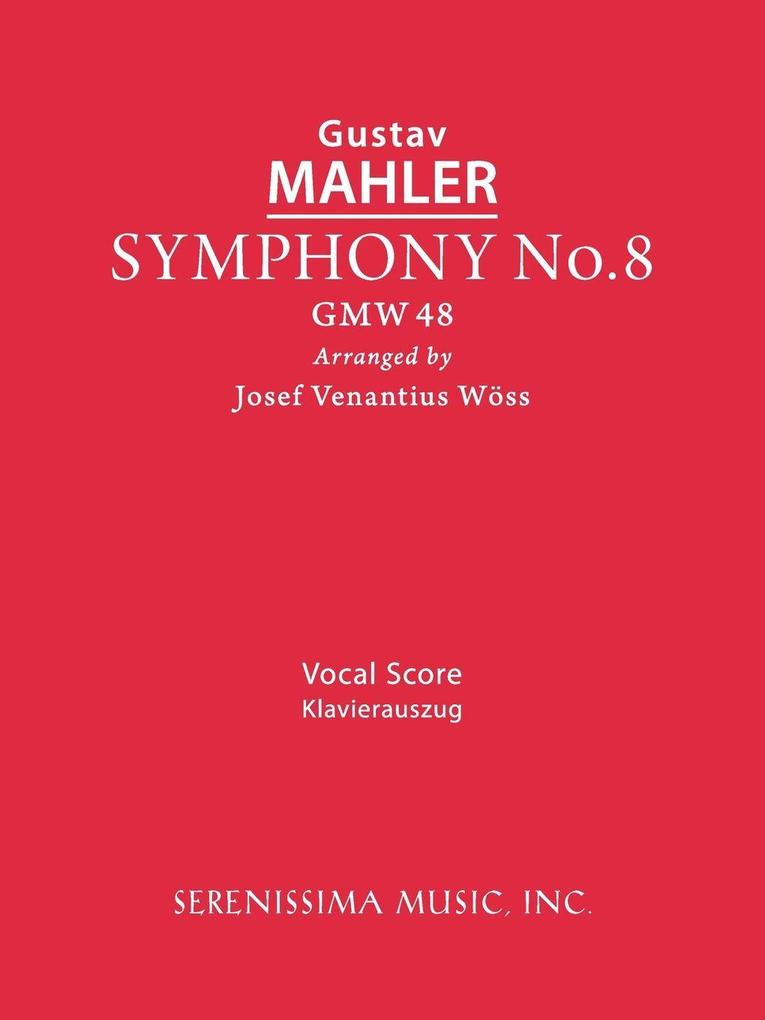 Mahler's penultimate symphony received its premiere performance in Munich on September 12th, 1910 with a chorus of about 850, and an orchestra of 171. These massive forces led to Mahler's agent dubbing the work "Symphony of a Thousand." Mahler did not approve of the title at all, but it remains. The piece was a great success at its premiere, one of few of Mahler's works to be well received in his lifetime. It was the last premiere of one his works that Mahler witnessed before his death. Unabridged digitally enhanced reprint of the vocal score prepared by Josef Woss that was first published in 1910 by Universal Edition, Vienna. Matching large conductor score and complete orchestral parts are also available from Serenissima Music (96070).