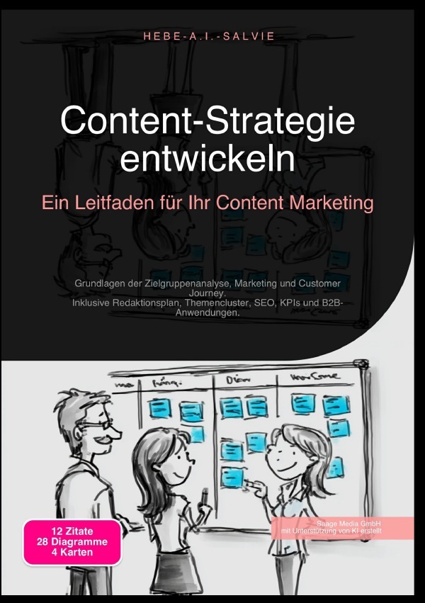 Dieses Buch bietet Ihnen einen strukturierten Leitfaden, um eine fundierte Content-Strategie zu erstellen und Ihre Unternehmensziele wirksam zu unterstützen. Es begleitet Sie schrittweise von den strategischen Grundlagen bis hin zur Erfolgsmessung Ihrer Maßnahmen. Lernen Sie, wie Sie durch eine detaillierte Zielgruppenanalyse im Marketing die Bedürfnisse und Problemstellungen Ihrer Kunden präzise identifizieren. Der Leitfaden zeigt Ihnen, wie Sie aus diesen Erkenntnissen Personas entwickeln und Ihre Zielgruppen segmentieren, um eine gezielte Ansprache zu gewährleisten. Ein weiterer Schwerpunkt liegt auf der Erstellung von Themencluster SEO, um Ihre Sichtbarkeit in Suchmaschinen zu verbessern und Inhalte thematisch sinnvoll zu strukturieren. Sie erhalten praxisnahe Anleitungen, wie Sie den passenden Customer Journey Content für jede Phase der Kundenreise konzipieren, von der ersten Bewusstseinsbildung bis zur finalen Entscheidung. Eine anpassbare Redaktionsplan Vorlage hilft Ihnen dabei, die Veröffentlichung Ihrer Inhalte systematisch zu planen, Verantwortlichkeiten zuzuweisen und Arbeitsabläufe zu organisieren. Für die Optimierung Ihrer bestehenden Inhalte wird ein verständlicher Content Audit Leitfaden vorgestellt, mit dem Sie eine quantitative und qualitative Bestandsaufnahme durchführen. Daraus leiten Sie konkrete Handlungsmaßnahmen ab, wie die Aktualisierung, Zusammenführung oder Neuerstellung von Beiträgen. Für dieses Buch haben wir moderne Technologien genutzt - darunter Künstliche Intelligenz und individuell entwickelte Softwarelösungen. Sie kamen in vielen Phasen des Entstehungsprozesses zum Einsatz: von der Ideenfindung und Recherche über das Schreiben und Lektorat bis hin zur Qualitätssicherung und der Gestaltung der dekorativen Illustrationen. Unser Ziel ist es, Ihnen damit eine Leseerfahrung zu bieten, die besonders stimmig und zeitgemäß ist.