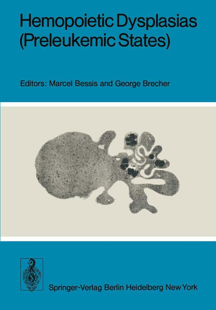 Preleukemic States.- Preleukemic States.- Section I: Clinical and Hematological Data.- The Preleukemic Syndrome: Clinical and Laboratory Features, Natural Course, and Management.- Preleukemic States. I. Definition and Classification. II. Refractory Anemia with an Excess of Myeloblasts in the Bone Marrow (Smoldering Acute Leukemia).- Preleukemic States in Atomic Bomb Survivors in Japan.- Acute Myeloblastic Leukemia after Immunodepressive Therapy for Primary Nonmalignant Disease.- Preleukemia: Does it Exist?.- Section II: New Techniques and Special Investigations.- Prediction of Relapse and Remission in AML by Marrow Culture Criteria.- In vitro Colony Growth of Acute Myelogenous Leukemia.- The Use of the Robinson in vitro Agar Culture Assay in Adult Acute Leukemia.- Significance of PHA Induced Clonogenic Cells in Chronic Myeloid Leukemia and Early Acute Myeloid Leukemia.- An Approach to Human Preleukemia Using Cell Culture Studies.- Comparative Electron-Microscopic Study of the Erythrocytic Line in Refractory Anemia (Preleukemia) and Myelomonocytic Leukemia.- Cytochemical and Ultrastructural Studies of Aberrant Granules in the Neutrophils of Two Patients with Myeloperoxidase Deficiency during a Preleukemic State. Relationship to Abnormal Bactericidal Activity.- Blood Groups Changes in Preleukemic States.- The Cellular Distribution of Erythrocyte and Normoblast A1and A Antigens in Normal and Preleukemic States. An Immunoelectron Microscopy Study.- Abnormal Distribution of Erythrocytes A1 Antigens in Preleukemia as Demonstrated by an Immunofluorescence Technique.- Cell Membrane Antigens Associated with Human Adult Acute Leukemia.- Section III: Pathophysiology.- Notions about Human Stem Cells.- Preleukemic States in the Light of the Leukemia Cytokinetics.- The Role of Lymphoid and Haematopoietic Target Cells in Viral Lymphomagenesis of C57BL/Ka Mice. I. Susceptibility to Viral Replication.- The Role of Lymphoid and Haematopoietic Target Cells in Viral Lymphomagenesis of C57BL/Ka Mice. II. Neoplastic Transformation of Bone Marrow-Derived Cells in the Thymic Microenvironment.- Oncogenesis in Human Acute Leukemia.- Problems Relating to Immunoselection of Leukemias.- Section IV: General Discussion.- I. Is Preleukemic States an Adequate Designation?.- II. Should Hemopoietic Dysplasias be Treated?.- III. A Registry for Hemopoietic Dysplasias.