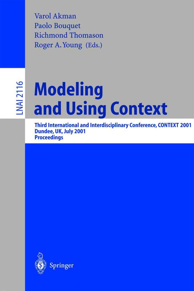 Full Papers. - Trade-Offs between Inductive Power and Logical Omniscience in Modeling Context. - Uncertainty and Conflict Handling in the ATT-Meta Context-Based System for Metaphorical Reasoning. - Word Sieve: A Method for Real-Time Context Extraction. - Pragmatic Reasoning Pragmatic Semantics and Semantic Pragmatics. - On the Dimensions of Context Dependence: Partiality, Approximation, and Perspective. - Context of Utterance and Intended Context. - Two Formalizations of Context: A Comparison. - Consider the Alternatives: Focus in Contrast and Context. - Context in the Study of Human Languages and Computer Programming Languages: A Comparison. - Modeling Context Effect in Perceptual Domains. - Learning Appropriate Contexts. - Context and Relevance: A Pragmatic Approach. - Counterfactual Reasoning. - Context-Based Ambiguity Management for Natural Language Processing. - A Connectionist-Symbolic Approach to Modeling Agent Behavior: Neural Networks Grouped by Contexts. - Context Dependency of Pattern-Category Learning. - Simulating Context Effects in Problem Solving with AMBR. - A New Method Based on Context for Combining Statistical Language Models. - Experimental Pragmatics: Towards Testing Relevance-Based Predictions about Anaphoric Bridging Inferences. - Workflow Context as a Means for Intelligent Information Support. - The Role and Modeling of Context in a Cognitive Model of Rogers Person-Centred Approach. - Local Holism. - Whom Is the Problem of the Essential Indexical a Problem for? . - Contextual Categorization and Cognitive Phenomena. - Representing the Graphics Context to Support Understanding Plural Anaphora in Multi-modal Interfaces. - Using Explicit, A Priori Contextual Knowledge in an Intelligent Web Search Agent. - Contexts and Philosophical Problems of Knowledge. - Practical ContextTransformation for Information System Interoperability. - Explanation as Contextual. - Contextual Categorization: A Mechanism Linking Perception and Knowledge in Modeling and Simulating Perceived Events as Actions. - Short Papers. - The Motivational Context. - An Approach to Anaphora Based on Mental Models. - Context and Multi-media Corpora. - Belief Expansion, Contextual Fit, and the Reliability of Information Sources. - The Role of the Context in the Acquisition and in the Organisation of Knowledge: Studies from Adults and from Children. - VC-Dimension of a Context-Dependent Perceptron. - A Framework for Context-Driven Web Resource Discovery. - Specifying Contexts for Coordination Patterns. - Looking at Situated Technology: Differences in Pattern of Interaction Reflect Differences in Context. - A Context-Driven Approach for Knowledge Acquisition: Application to a Leukaemia Domain. - Context in Natural-Language Communication: Presupposed or Co-supposed? . - Using Contexts Competition to Model Tactical Human Behavior in a Simulation. - Case Studies in Developing Contextualising Information Systems. - About Some Relationships between Knowledge and Context. - Combining Cases and Rules to Provide Contextualised Knowledge Based Systems.