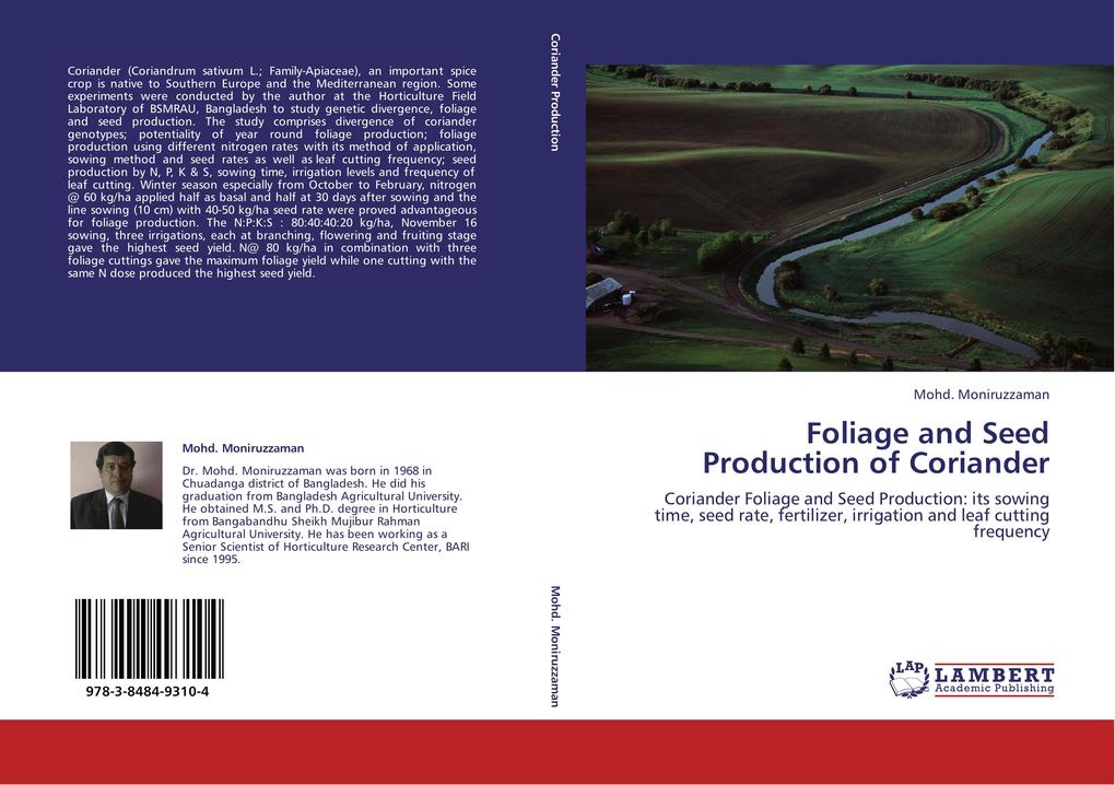 Coriander (Coriandrum sativum L. ; Family-Apiaceae), an important spice crop is native to Southern Europe and the Mediterranean region. Some experiments were conducted by the author at the Horticulture Field Laboratory of BSMRAU, Bangladesh to study genetic divergence, foliage and seed production. The study comprises divergence of coriander genotypes; potentiality of year round foliage production; foliage production using different nitrogen rates with its method of application, sowing method and seed rates as well as leaf cutting frequency; seed production by N, P, K & S, sowing time, irrigation levels and frequency of leaf cutting. Winter season especially from October to February, nitrogen @ 60 kg/ha applied half as basal and half at 30 days after sowing and the line sowing (10 cm) with 40-50 kg/ha seed rate were proved advantageous for foliage production. The N:P:K:S : 80:40:40:20 kg/ha, November 16 sowing, three irrigations, each at branching, flowering and fruiting stage gave the highest seed yield. N@ 80 kg/ha in combination with three foliage cuttings gave the maximum foliage yield while one cutting with the same N dose produced the highest seed yield.