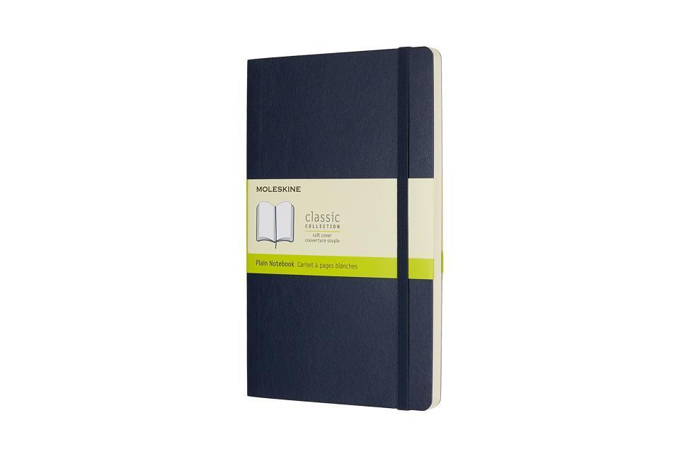 Moleskine's sapphire blue notebook with a soft cover. It features acid-free pages, rounded corners, elastic closure and ribbon bookmark. Das legendäre Notizbuch mit weichem Einband jetzt in sattem Saphirblau. Mit einer vielfältigen Auswahl an Größen und Seitenlayouts sind diese Notizbücher stabile aber selbstverständlich anpassungsfähige Werkzeuge zum Notizen machen und besitzen alle kultigen Moleskine Merkmale wie abgerundete Ecken, Lesezeichenband, säurefreies, elfenbeinweißes Papier, Gummiband zum Verschließen und erweiterbaren Innentasche mit der Geschichte von Moleskine darin.