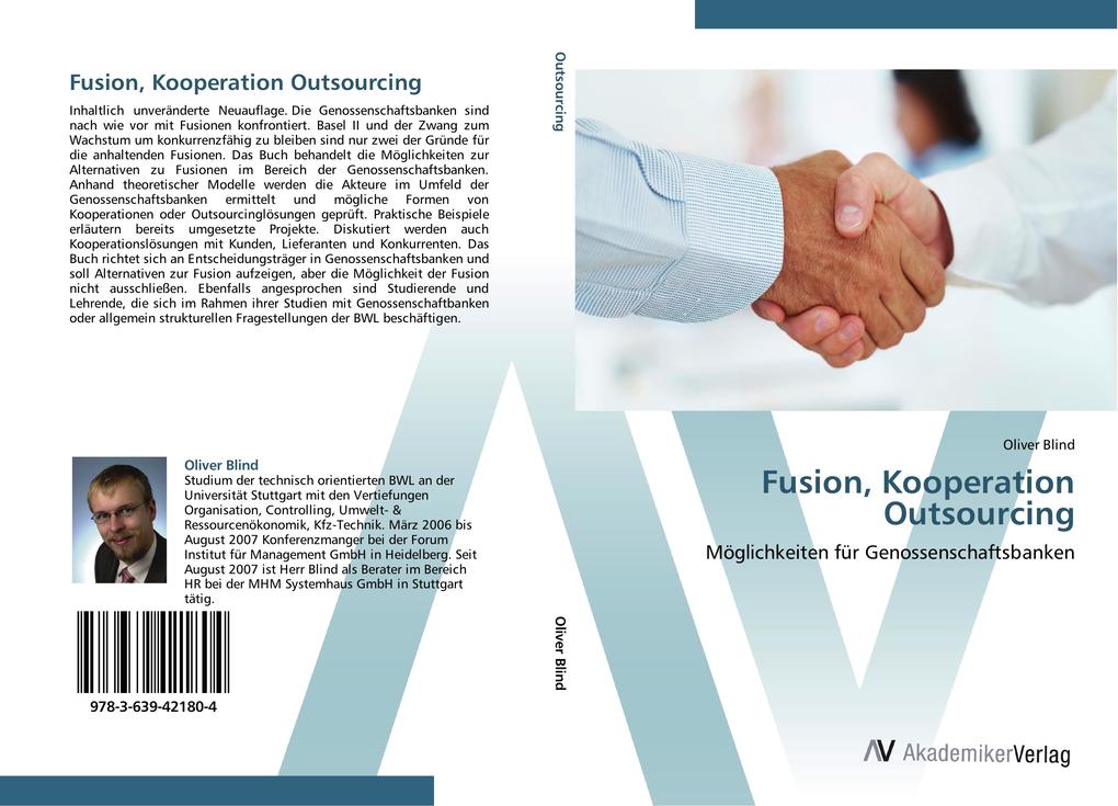 Inhaltlich unveränderte Neuauflage. Die Genossenschaftsbanken sind nach wie vor mit Fusionen konfrontiert. Basel II und der Zwang zum Wachstum um konkurrenzfähig zu bleiben sind nur zwei der Gründe für die anhaltenden Fusionen. Das Buch behandelt die Möglichkeiten zur Alternativen zu Fusionen im Bereich der Genossenschaftsbanken. Anhand theoretischer Modelle werden die Akteure im Umfeld der Genossenschaftsbanken ermittelt und mögliche Formen von Kooperationen oder Outsourcinglösungen geprüft. Praktische Beispiele erläutern bereits umgesetzte Projekte. Diskutiert werden auch Kooperationslösungen mit Kunden, Lieferanten und Konkurrenten. Das Buch richtet sich an Entscheidungsträger in Genossenschaftsbanken und soll Alternativen zur Fusion aufzeigen, aber die Möglichkeit der Fusion nicht ausschließen. Ebenfalls angesprochen sind Studierende und Lehrende, die sich im Rahmen ihrer Studien mit Genossenschaftbanken oder allgemein strukturellen Fragestellungen der BWL beschäftigen.