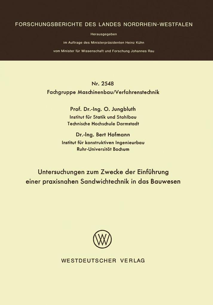 Seit Anfang der 60er Jahre werden im Sinne baustatischer Beanspruchung nichttragende Sandwichbauteile des Werkstoffsystems Stahlfeinblech/Poly urethanhartschaum besonders fur Hallenwiinde im Industriebau eingesetzt, wobei auch erstmalig die groi3technische kontinuierliche Herstellung ge lang. 1m Vortrag N 208 der Rheinisch-Westfiilischen Akademie der Wissenschaf ten: O. Jungbluth "Sandwichfliichentragwerke im konstruktiven Ingenieur bau" (1970) wurde ein Konzept dargestellt, die Sandwichtechnik dieses Ver bundsystems auch fur "tragende Beanspruchung" weiterzuentwickeln. Das Wissenschaftsministerium des Landes Nordrhein-Westfalen griff die Vor schliige auf und forderte dankenswerter Weise das hier vorgelegte For schungsprojekt, das an der Ruhr-Universitiit Bochum und an der Techni schen Hochschule Darmstadt durchgefuhrt wurde. Ziel dieser Forschungsarbeit und des am Institut Stahlbau der TH Darm stadt weitergefUhrten F orschungsfeldes "VerbundfHichentragwerke" ist die Forderung der Entwicklung weitgespannter Dachtragwerke als Trapezpro filplatten und Faltwerke mit Integration bauphysikalischer Eigenschaften wie Wiirmediimmung, Schall- und Brandschutz. Hierbei werden Werkstoff verbundsysteme auf anorganischer und organischer Basis, ihr Kurz- und Langzeitverhalten sowie das Trag- und Versagensverhalten der Bauteile und auch Konzepte fUr automatisierte moglichst kontinuierliche Herstell method en untersucht.