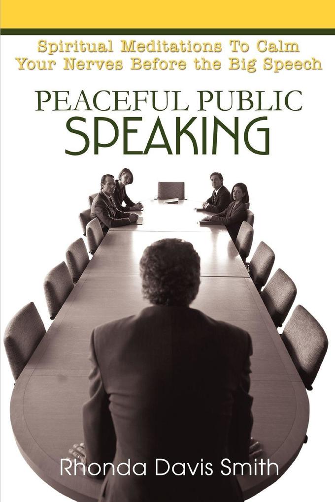 Peaceful Public Speaking is a practical guide to overcoming the fear of public speaking and is the first book to take a spiritual approach to the problem and its resolution. Building on the phenomenal success of her Fearless Public Speaking Seminars, author and consultant Rhonda Davis Smith introduces the 12 Spiritual Laws of Public Speaking and explains the groundbreaking philosophy that established her as a pioneer in the field of public communications. Designed for use right before an upcoming speech, Peaceful Public Speaking offers meditations in a convenient handbook that you can take to the podium with you. This book starts a new conversation about the dynamics of public speaking that will transform the way you think about giving a speech and turn your anxiety into anticipation.