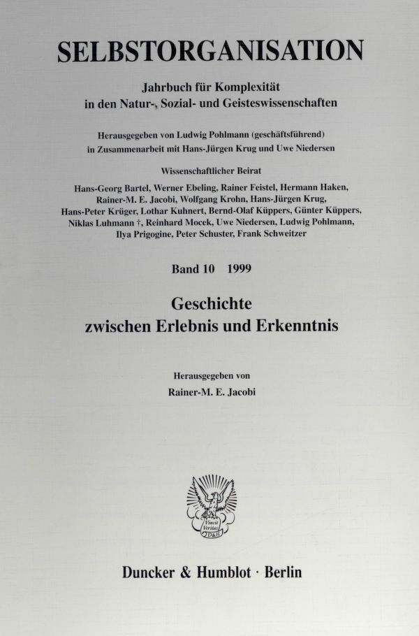 So sei mit dem vorliegenden Band der Versuch unternommen, bislang nicht thematisierte Bezüge des Paradigmas der Selbstorganisation zu anderen Formen geschichtlichen Denkens zu entfalten. Hierfür konnten neben dem Lyriker und Essayisten Günter Kunert und dem Naturphilosophen Klaus M. Meyer-Abich renommierte Kenner des jüdischen Denkens - u. a. Eveline Goodman-Thau aus Jerusalem - gewonnen werden. Nirgend deutlicher als im Horizont epochaler Bruchstellen geschichtlicher Erfahrung steht menschliches Leben unter dem Anspruch sowohl der Vergangenheit als auch der Zukunft. Es ist zugleich Antwort wie Versprechen. Gegen alle Utopien der Vollendbarkeit gründet sein Ethos in der Fragmentarität und Kontingenz der individuellen geschichtlichen Situation.