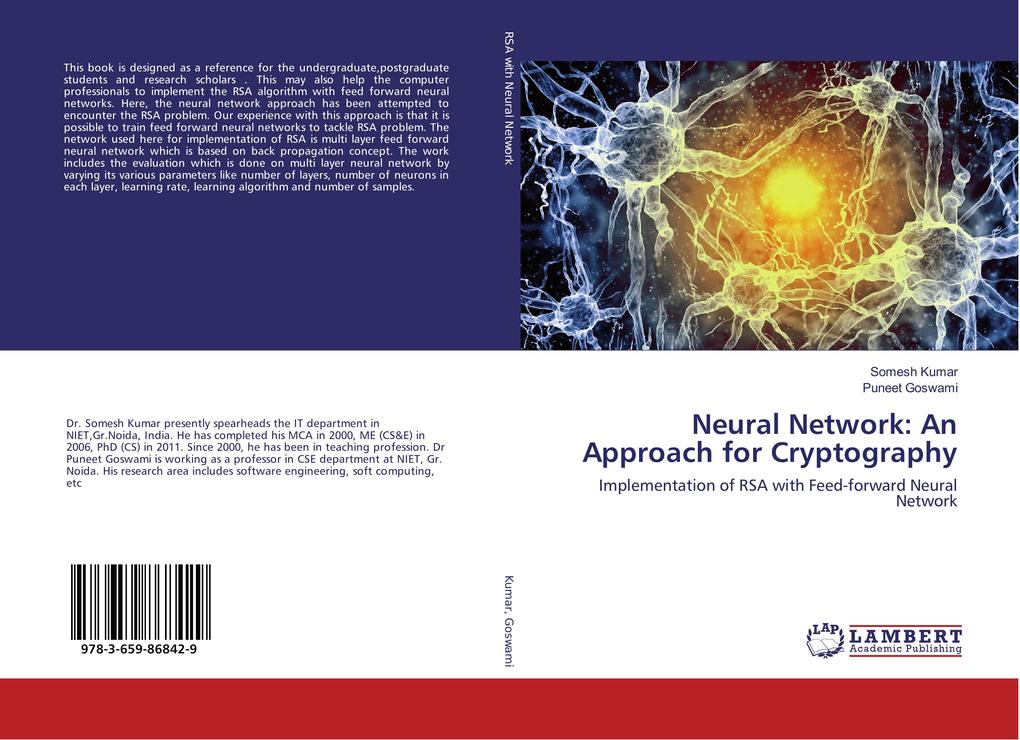 This book is designed as a reference for the undergraduate, postgraduate students and research scholars . This may also help the computer professionals to implement the RSA algorithm with feed forward neural networks. Here, the neural network approach has been attempted to encounter the RSA problem. Our experience with this approach is that it is possible to train feed forward neural networks to tackle RSA problem. The network used here for implementation of RSA is multi layer feed forward neural network which is based on back propagation concept. The work includes the evaluation which is done on multi layer neural network by varying its various parameters like number of layers, number of neurons in each layer, learning rate, learning algorithm and number of samples.