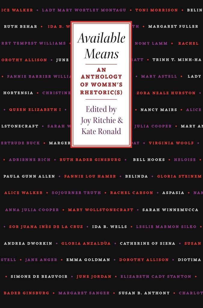 Available Means offers seventy women rhetoricians-from ancient Greece to the twenty-first century-a room of their own for the first time. Editors Joy Ritchie and Kate Ronald do so in the feminist tradition of recovering a previously unarticulated canon of women's rhetoric. Women whose voices are central to such scholarship are included here, such as Aspasia (a contemporary of Plato's), Margery Kempe, Margaret Fuller, and Ida B. Wells. Added are influential works on what it means to write as a woman-by Virginia Woolf, Adrienne Rich, Nancy Mairs, Alice Walker, and Hélène Cixous. Public "manifestos" on the rights of women by Hortensia, Mary Astell, Maria Stewart, Sarah and Angelina Grimké, Anna Julia Cooper, Margaret Sanger, and Audre Lorde also join the discourse.