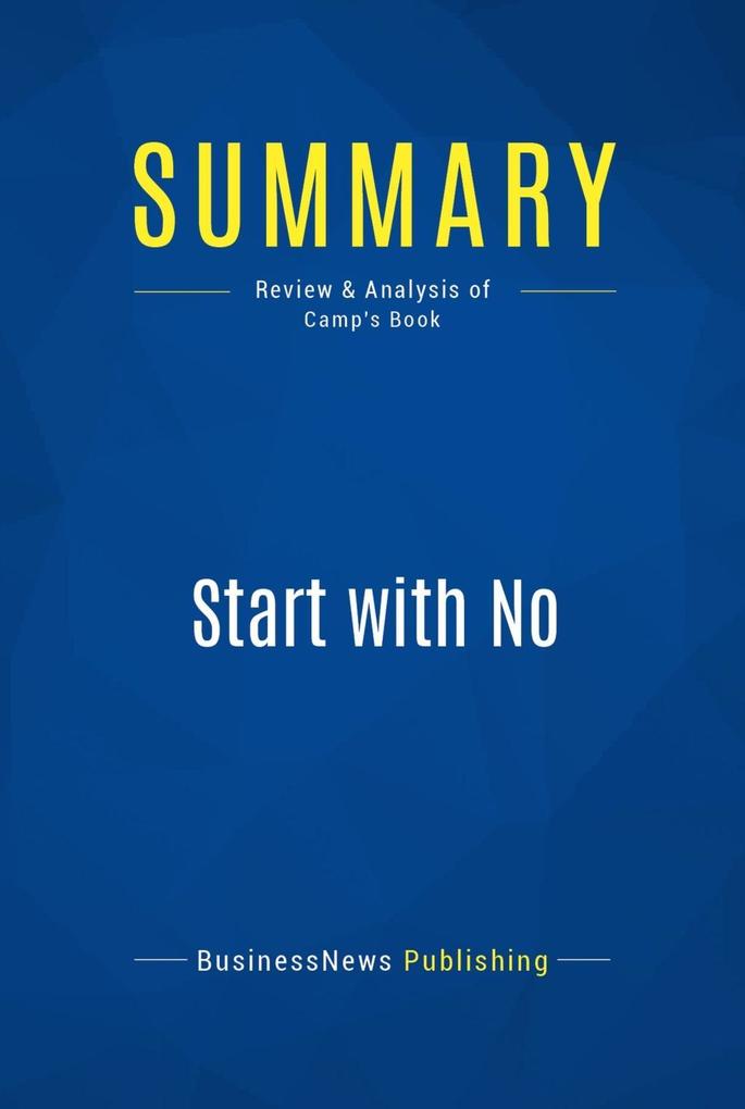 This complete summary of the ideas from Jim Camp's book "Start with No" shows how we all make negotiations every day of our lives and it's important to develop strong negotiation skills. In his book, the author explains why a 'win-win' situation is the wrong approach to negotiations and why all good negotiations start with a "no". By following this advice, you will give your fellow negotiator an opportunity to think more rationally and, in turn, get a more worthwhile result.