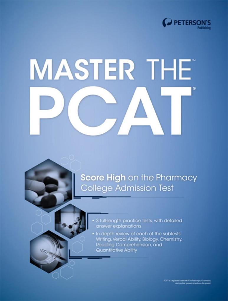 Peterson's Master the PCAT is an in-depth review that offers thorough preparation for the computer-based exam. After learning about the structure, format, scoring and score reporting, and the subtests and question types, you can take a diagnostic test to learn about your strengths and weaknesses. The next six parts of the eBook are focused on detailed subject reviews for each subtest: verbal ability, reading comprehension, biology, chemistry, quantative ability, and writing. Each review includes practice questions with detailed answer explanations. You can take two practice tests to track your study progress. The tests also offer detailed answer explanations to further improve your knowledge and inderstanding of the tested subjects. The eBook concludes with an appendix that provides helpful information on a variety of careers in pharmacy and ten in-depth career profiles.