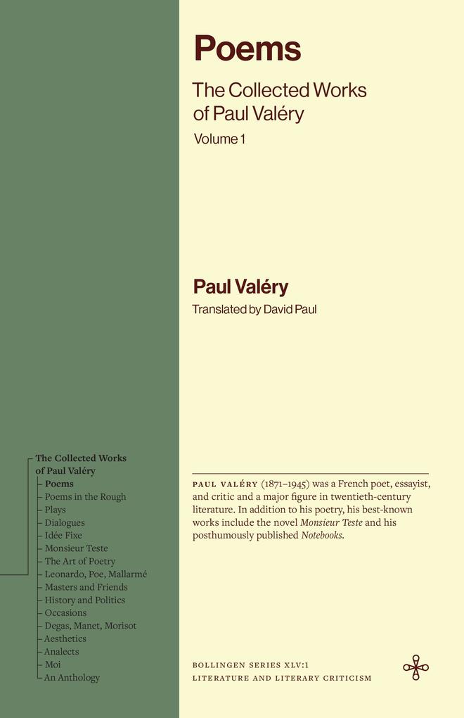 The Collected Works of Paul Valéry, the first collected edition of the writer in English, features new translations, the original French on facing pages for poetic works, and editorial notes.