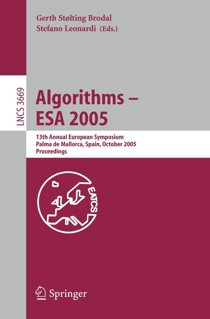 Designing Reliable Algorithms in Unreliable Memories. - From Balanced Graph Partitioning to Balanced Metric Labeling. - Fearful Symmetries: Quantum Computing, Factoring, and Graph Isomorphism. - Exploring an Unknown Graph Efficiently. - Online Routing in Faulty Meshes with Sub-linear Comparative Time and Traffic Ratio. - Heuristic Improvements for Computing Maximum Multicommodity Flow and Minimum Multicut. - Relax-and-Cut for Capacitated Network Design. - On the Price of Anarchy and Stability of Correlated Equilibria of Linear Congestion Games, , . - The Complexity of Games on Highly Regular Graphs. - Computing Equilibrium Prices: Does Theory Meet Practice? . - Efficient Exact Algorithms on Planar Graphs: Exploiting Sphere Cut Branch Decompositions. - An Algorithm for the SAT Problem for Formulae of Linear Length. - Linear-Time Enumeration of Isolated Cliques. - Finding Shortest Non-separating and Non-contractible Cycles for Topologically Embedded Graphs. - Delineating Boundaries for Imprecise Regions. - Exacus: Efficient and Exact Algorithms for Curves and Surfaces. - Min Sum Clustering with Penalties. - Improved Approximation Algorithms for Metric Max TSP. - Unbalanced Graph Cuts. - Low Degree Connectivity in Ad-Hoc Networks. - 5-Regular Graphs are 3-Colorable with Positive Probability. - Optimal Integer Alphabetic Trees in Linear Time. - Predecessor Queries in Constant Time? . - An Algorithm for Node-Capacitated Ring Routing. - On Degree Constrained Shortest Paths. - A New Template for Solving p-Median Problems for Trees in Sub-quadratic Time. - Roll Cutting in the Curtain Industry. - Space Efficient Algorithms for the Burrows-Wheeler Backtransformation. - Cache-Oblivious Comparison-Based Algorithms on Multisets. - Oblivious vs. Distribution-Based Sorting: An Experimental Evaluation. - Allocating Memory in a Lock-Free Manner. - Generating Realistic Terrains with Higher-Order Delaunay Triangulations. - I/O-Efficient Construction of Constrained Delaunay Triangulations. - Convex Hull and Voronoi Diagram of Additively Weighted Points. - New Tools and Simpler Algorithms for Branchwidth. - Treewidth Lower Bounds with Brambles. - Minimal Interval Completions. - A 2-Approximation Algorithm for Sorting by Prefix Reversals. - Approximating the 2-Interval Pattern Problem. - A Loopless Gray Code for Minimal Signed-Binary Representations. - Efficient Approximation Schemes for Geometric Problems? . - Geometric Clustering to Minimize the Sum of Cluster Sizes. - Approximation Schemes for Minimum 2-Connected Spanning Subgraphs in Weighted Planar Graphs. - Packet Routing and Information Gathering in Lines, Rings and Trees. - Jitter Regulation for Multiple Streams. - Efficient c-Oriented Range Searching with DOP-Trees. - Matching Point Sets with Respect to the Earth Mover s Distance. - Small Stretch Spanners on Dynamic Graphs. - An Experimental Study of Algorithms for Fully Dynamic Transitive Closure. - Experimental Study of Geometric t-Spanners. - Highway Hierarchies Hasten Exact Shortest Path Queries. - Preemptive Scheduling of Independent Jobs on Identical Parallel Machines Subject to Migration Delays. - Fairness-Free Periodic Scheduling with Vacations. - Online Bin Packing with Cardinality Constraints. - Fast Monotone 3-Approximation Algorithm for Scheduling Related Machines. - Engineering Planar Separator Algorithms. - Stxxl: Standard Template Library for XXL Data Sets. - Negative Cycle Detection Problem. - An Optimal Algorithm for Querying Priced Information: Monotone Boolean Functions and Game Trees. - Online View Maintenance Under a Response-Time Constraint. - Online Primal-Dual Algorithms for Coveringand Packing Problems. - Efficient Algorithms for Shared Backup Allocation in Networks with Partial Information. - Using Fractional Primal-Dual to Schedule Split Intervals with Demands. - An Approximation Algorithm for the Minimum Latency Set Cover Problem. - Workload-Optimal Histograms on Streams. - Finding Frequent Patterns in a String in Sublinear Time. - Online Occlusion Culling. - Shortest Paths in Matrix Multiplication Time. - Computing Common Intervals of K Permutations, with Applications to Modular Decomposition of Graphs. - Greedy Routing in Tree-Decomposed Graphs. - Making Chord Robust to Byzantine Attacks. - Bucket Game with Applications to Set Multicover and Dynamic Page Migration. - Bootstrapping a Hop-Optimal Network in the Weak Sensor Model. - Approximating Integer Quadratic Programs and MAXCUT in Subdense Graphs. - A Cutting Planes Algorithm Based Upon a Semidefinite Relaxation for the Quadratic Assignment Problem. - Approximation Complexity of min-max (Regret) Versions of Shortest Path, Spanning Tree, and Knapsack. - Robust Approximate Zeros. - Optimizing a 2D Function Satisfying Unimodality Properties.