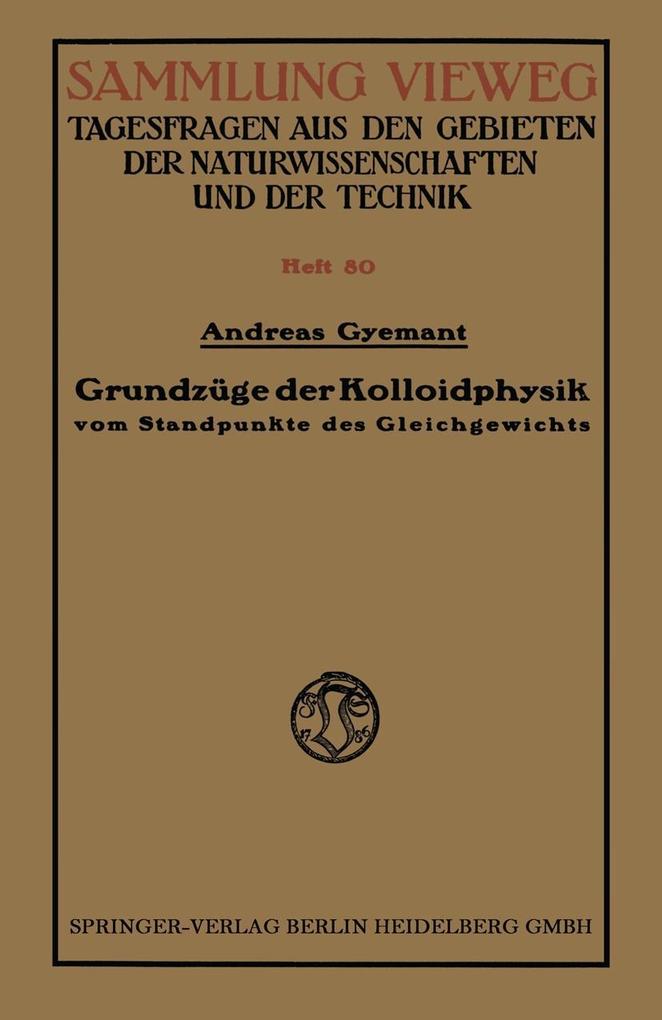 Inhaltsübersicht.- I. Die van der Waalsschen Kräfte.- II. Die elektrische Doppelschicht.- III. Die Hydratation der Micellen.- IV. Der kolloide Gleichgewichtszustand.- V. Die Schwankungen im Gleichgewicht.- VI. Das Gleichgewicht der Ionen.- VII. Die stationären Bewegungszustände.- Literaturhinweise.