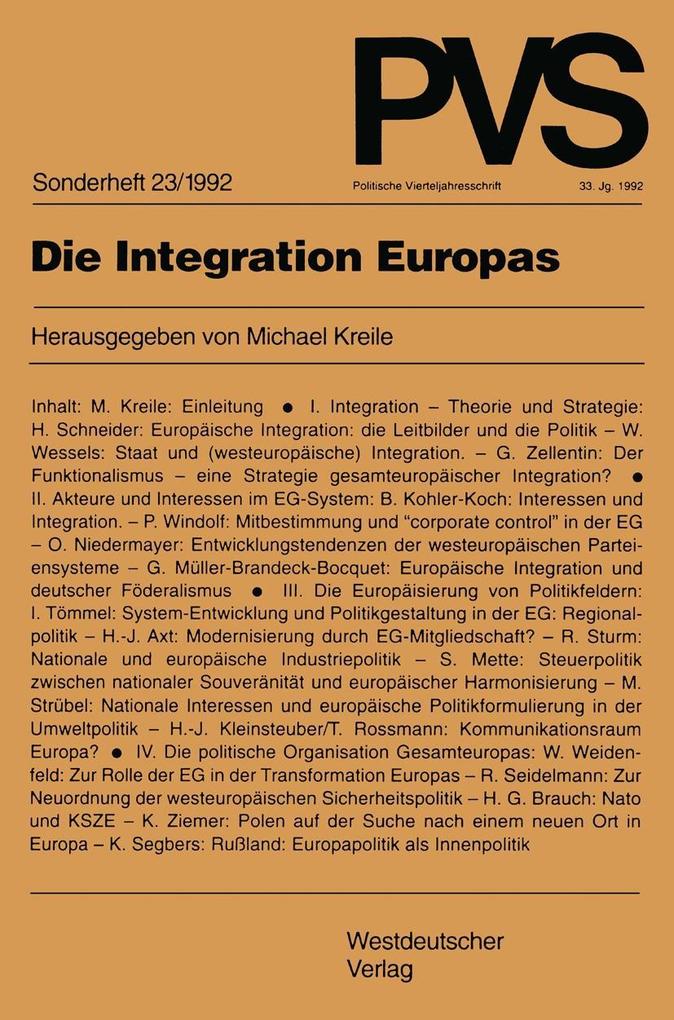1. Integration Theorie und Strategie.- Europäische Integration: die Leitbilder und die Politik.- Staat und (westeuropäische) Integration. Die Fusionsthese.- Der Funktionalismus eine Strategie gesamteuropäischer Integration?.- 2. Akteure und Interessen im EG-System.- Interessen und Integration. Die Rolle organisierter Interessen im westeuropäischen Integrationsprozeß.- Mitbestimmung und corporate control in der Europäischen Gemeinschaft.- Entwicklungstendenzen der westeuropäischen Parteiensysteme: eine quantitative Analyse.- Europäische Integration und deutscher Föderalismus.- 3. Die Europäisierung von Politikfeldern.- System-Entwicklung und Politikgestaltung in der Europäischen Gemeinschaft am Beispiel der Regionalpolitik.- Modernisierung durch EG-Mitgliedschaft? Portugal, Spanien und Griechenland im Vergleich.- Konkurrenz oder Synergie? Nationale und europäische Industriepolitik.- Steuerpolitik zwischen nationaler Souveränität und europäischer Harmonisierung.- Nationale Interessen und europäische Politikformulierung in der Umweltpolitik.- Kommunikationsraum Europa? Die Medienpolitik der EG und die europäische Integration.- 4. Die politische Organisation Gesamteuropas.- Zur Rolle der Europäischen Gemeinschaft in der Transformation Europas.- Zur Neuordnung der westeuropäischen Sicherheitspolitik.- Nato und KSZE als institutionelle Elemente einer gesamteuropäischen Sicher- heitsarchitektur.- Polen auf der Suche nach einem neuen Ort in Europa.- Rußland: Europapolitik als Innenpolitik.- Verzeichnis der Autoren.