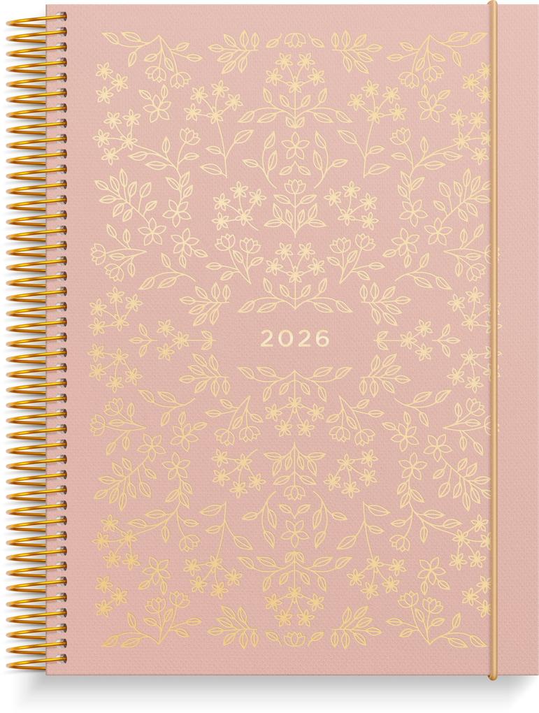 Format: A5. Abmessung: 215 x 160 x 20 mm. Layout: Woche/2-Seiten. Vertikal. Kalendarium: 2025-12-15 - 2027-01-03. Einband: Karton mit Struktur. Spiralgebunden. Einzelheiten: Elastisch. Bewegliche Plastikregisterkarten. Papiertasche. Inhalt: Stickerbogen. Seitenzahl: 160. Umweltinformationen: FSC® .