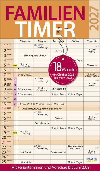 Korsch Familienplaner - 18-Monats-Kalender (Oktober 2026 bis März 2028)