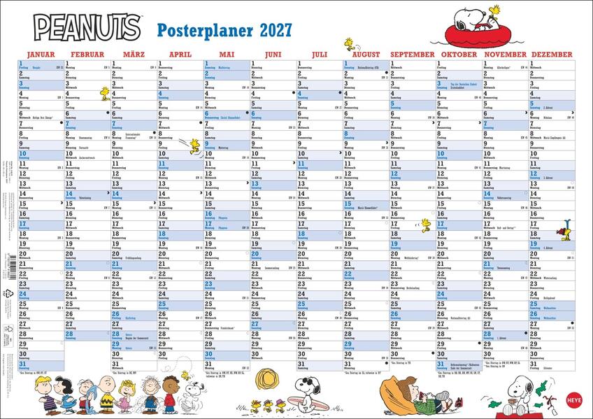 - Das ist Kult: Mit Snoopy, dem wohl bekanntesten Beagle der Welt, und diesem Wandplaner für Übersicht im Termindschungel sorgen- Für mehr Spaß beim Planen: Der Peanuts-Posterplaner im Format 68 x 48 cm mit witzigen Zeichnungen und Platz für Eintragungen- Begeistert Fans von Charlie Brown und Co. : Lustiger Kalender mit Protagonisten der Kultcomics und farblich abgesetzten Feiertagen- Für alle, die richtig was vorhaben: Gute Laune-Kalenderposter 2027 mit Charlie Brown und seinen Freunden und viel Platz für alle Termine- Cartoon-Liebe fürs Büro oder Zuhause: Die Wandkalender von Heye aus dem Athesia Kalenderverlag