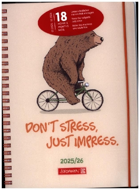 Blattgröße: 148 × 210 mm 2 Seiten = 1 Woche 208 Seiten, Druckfarbe Kalendarium: beige Wire-O-Bindung Kalendarium: 18 Monate Juli 2025 bis Dezember 2026 viersprachig: deutsch, englisch, französisch, italienisch PP-Einband, Softcover, flexibel, abgerundete Ecken, Farbe: mehrfarbig Monatsplan April 2025 bis Dezember 2026, Ferientermine Deutschland, Österreich, Schweiz, Frankreich, Belgien, Luxemburg, Niederlande und Südtirol, 9 Seiten Notizen, 2 Seiten Stundenpläne und 2 Seiten Notenübersicht, 6 Seiten Adressen Gummizugverschluss mit Lineal und Sammeltasche mit Seitenleiste: Unterrichtsfächer nur einmal eintragen. Die Fächer müssen nicht Woche für Woche vorgetragen werden. Eckperforation für Kalenderjahr 2025/2026 Farbe: mehrfarbig, PP-Umschlag.