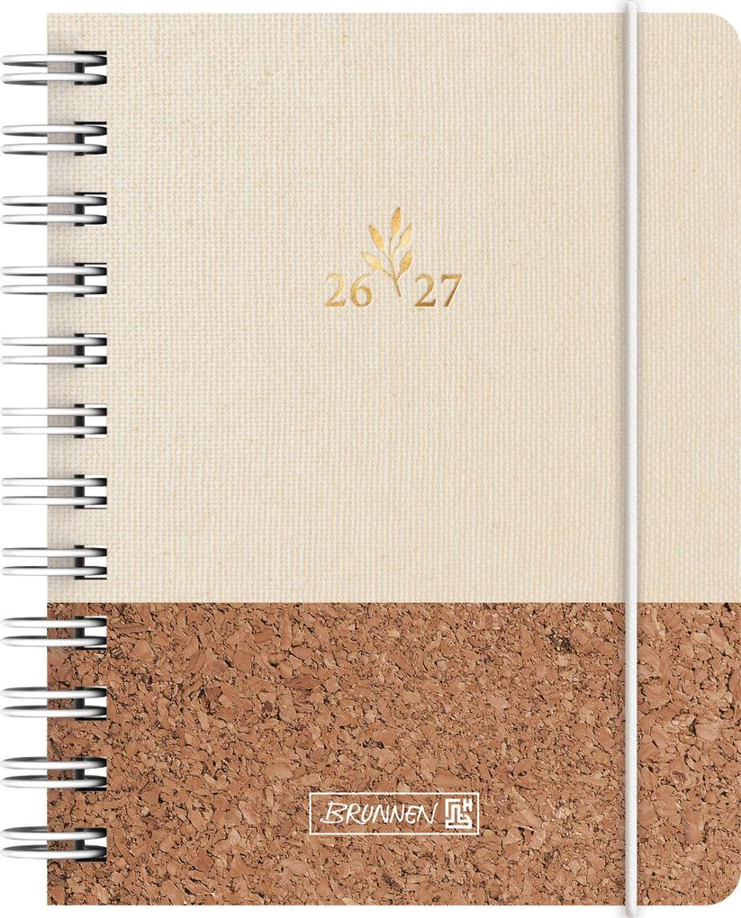 Blattgröße: 120×160 mm; 352 Seiten, Druckfarbe Kalendarium: beige; Wire-O-Bindung; Textil-Einband, Hardcover, mit Kork-Applikationen, abgerundete Ecken, Farbe: creme, braun, partielle Folienveredelung, Gummizugverschluss; Eckperforation; Monatsplan August 2026 bis Dezember 2027, Ferientermine Deutschland, Österreich, Schweiz, Frankreich, Belgien, Luxemburg, Niederlande und Südtirol, 3 Seiten Notizen, 2 Seiten Stundenpläne und 2 Seiten Notenüb. . .