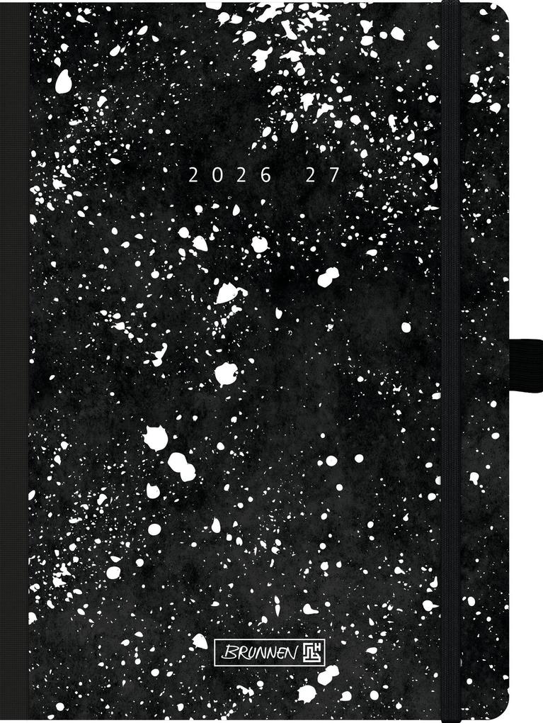Blattgröße: 148×210 mm; 208 Seiten, Druckfarbe Kalendarium: grau; Klebebindung; Karton-Umschlag, Softcover, flexibel, abgerundete Ecken, Farbe: weiß, schwarz, Gummizugverschluss; Eckperforation; Monatsplan April 2026 bis Dezember 2027, Ferientermine Deutschland, Österreich, Schweiz, Frankreich, Belgien, Luxemburg, Niederlande und Südtirol, 9 Seiten Notizen, 2 Seiten Stundenpläne und 2 Seiten Notenübersicht, 6 Seiten Adressen; mit Stifthalter . . .