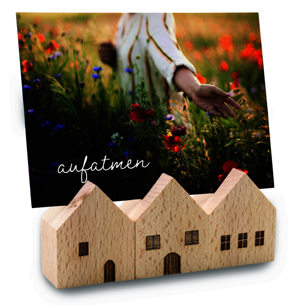 3er-Set Holzhäuser aus Buchenholz mit Kartenschlitz in Kartonverpackung (ca. 13, 8 x 3, 2 x 5, 7 cm) (BxHxT), Maße Einzelhäuser ca. : 5, 5 cm (hoch) x 4, 5 cm (breit) x 3 cm (tief). Einzeln oder als Häuserreihe verwendbar. Nur zur Dekoration. Kein Spielzeug.