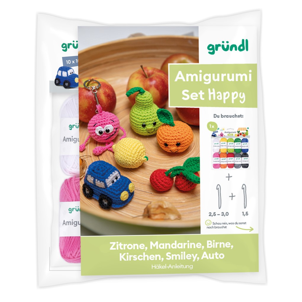 Dieses liebevoll zusammengestellte Set enthält alles, was man für kleine Häkelprojekte braucht: 10 farbenfrohe Baumwollgarn-Minis in klassischen Grundfarben (Weiß, Gelb, Hell- und Dunkelgrün, Blau, Rosa, Orange, Rot, Grau und Schwarz), eine Häkelnadel (Stärke 2, 5) und ein Anleitungsheft für 6 niedliche Amigurumis von einem kleinen Auto bis zu fröhlichem Obst.