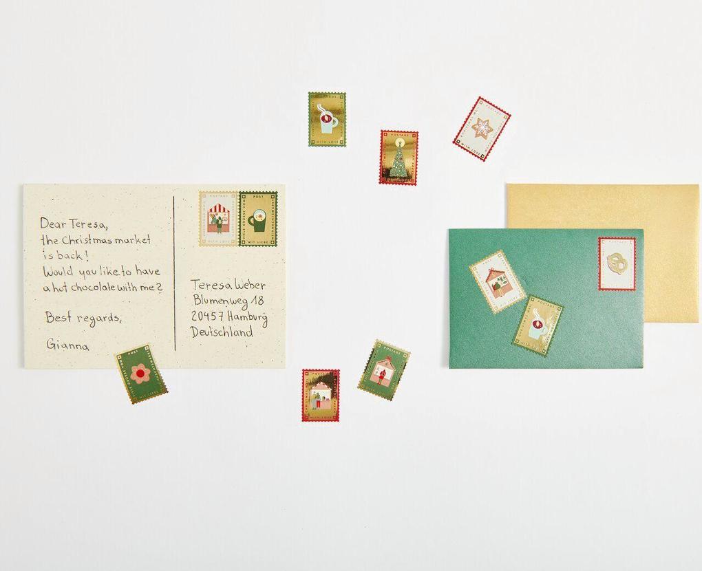 Diese Mini-Sticker im weihnachtlichen Briefmarken-Design sind ideal zur Verzierung von Weihnachtskarten und Geschenken. Mit detailreichen Motiven wie Plätzchen, Glühweintassen und Weihnachtsmarktbuden fangen sie die gemütliche Atmosphäre der Weihnachtszeit ein und setzen festliche Akzente. - Motiv: Weihnachtspost - Größe: Ø 2, 5cm - Inhalt: 120 Mini-Sticker