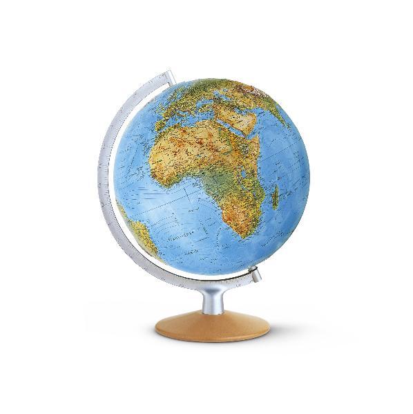 FRI 3017 Doppelbild-Leuchtglobus, unbeleuchtet physisch mit Satellitendaten erstellte Kartografie/ beleuchtet politisch, fühlbare Oberflächenstruktur, 30 cm Durchmesser, Echtholzfuß buche natur, skalierter Metallmeridian silberfarben, Kabel im Meridian integriert und mit schwarzem Schnurschalter 1, 50 Länge, Gesamthöhe 40 cm Energieeffizienzklasse: C