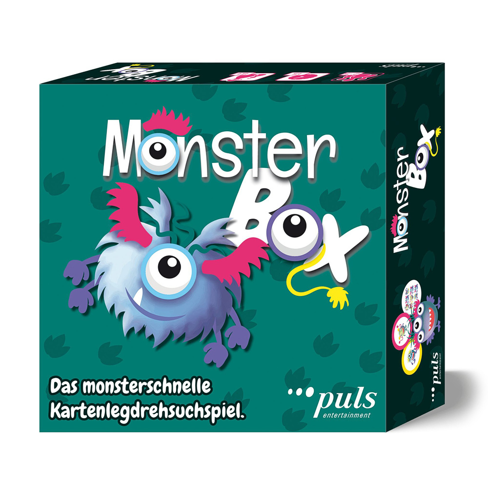 MONSTER BOX ist ein ganz neues und ganz schnelles Reaktions- und Konzentrationsspiel für Kinder ab 8 Jahren. Und das geht so: Jeder Spieler nimmt einen Satz gleichfarbiger Spielerkarten und legt sie vor sich in einem Quadrat von 3 x 3 Karten aus. Die Aufgabenkarten werden gemischt, auf einen Stapel gelegt und die oberste Karte wird umgedreht. Platziere deine Karten so schnell wie möglich gemäß der Aufgabenkarte, um diese als Siegpunkt zu ergattern. Und denke dran: Auf der Rückseite deiner Monsterkarten sind auch noch Bilder, die dir vielleicht aus der Patsche helfen. . . Ein monsterschneller Spaß für die ganze Familie.