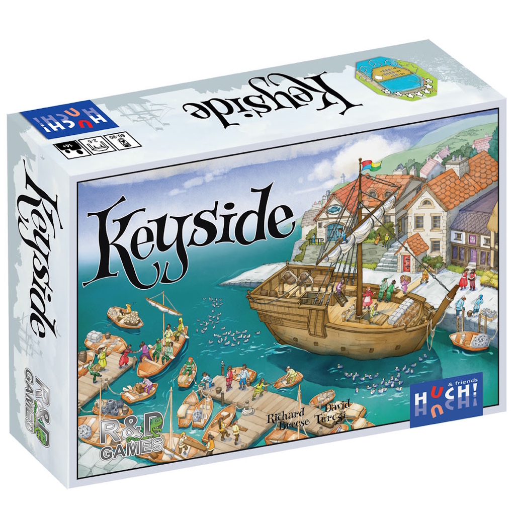 Eine Partie Keyside verläuft über 3 Runden, welche stets aus Landung und Hafenhandlung bestehen. Bei einer Landung platziert der aktive Spieler einen Würfel und bewegt das Boot in den Hafen, wobei andere Spieler ihm folgen können, so erhalten sie Präsenz in diesem Hafen. Bei der Hafenhandlung wird ein Hafen abgehandelt, auf dem ein Arbeiter des aktiven Spielers steht. Jeder dort vertretene Spieler erhält nun Vorteile, wie etwa Ressourcen, Tiere, die Option zu Bauen usw. Spieler erhalten jedoch nur Punkte für Kriterien, die in Häfen mit ihren Arbeitern auch gefragt sind. Und je mehr Arbeiter, desto mehr Punkte. Und die meisten Punkte gewinnen! Keyside vereint Würfelmanipulation, Arbeitereinsatz, Aktionsfolge und Sets sammeln zu einem frischen, spannenden Kennerspiel.