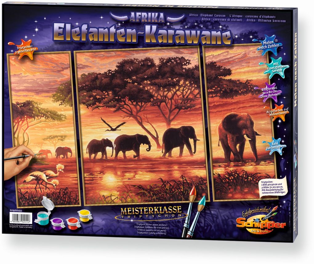 Schipper Malen-nach-Zahlen - Meisterklasse Triptychon - Afrika - Elefanten-Karawane