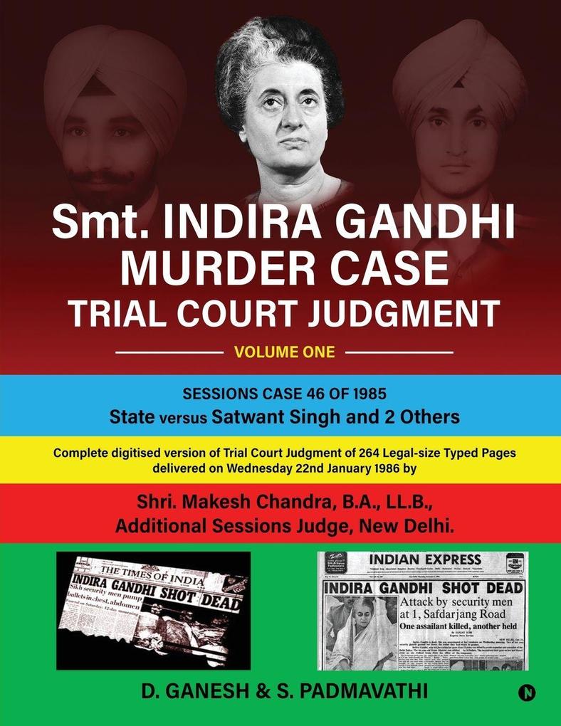 Prime Minister Mrs. Indira Gandhi was assassinated at 9.10 am on 31st October 1984 in her Official Residence No.1 Safdarjung Road, New Delhi by her own trusted body-guards. Sub-Inspector Beant Singh made an about-turn, advanced few steps towards the approaching Prime Minister, took out his Service revolver from the dab and fired at her injecting 5 bullets into her body on the left side. Constable Satwant Singh standing near his Sentry-booth straightaway raised his sten-gun and pumped 25 bullets on her right side thus virtually rippling her body into two havles. While Beant Singh was killed later in a cross-firing, Satwant Singh, Balbir Singh, and Kehar Singh were arraigned as Accused 1, 2, and 3 respectively in the Trial. The Tuglaq Road Police Station registered the case and prosecuted the accused under FIR 241/1984. The Trial Court had a tough time to go through voluminous Documents and more than 100 witnesses and delivered its judgment from Tihar Jail on Wednesday 22nd, January 1984. This Judgment in Two Volumes take you to the inroads of the Trial Court Judgment in Smt. Indira Gandhi Assassination Case.