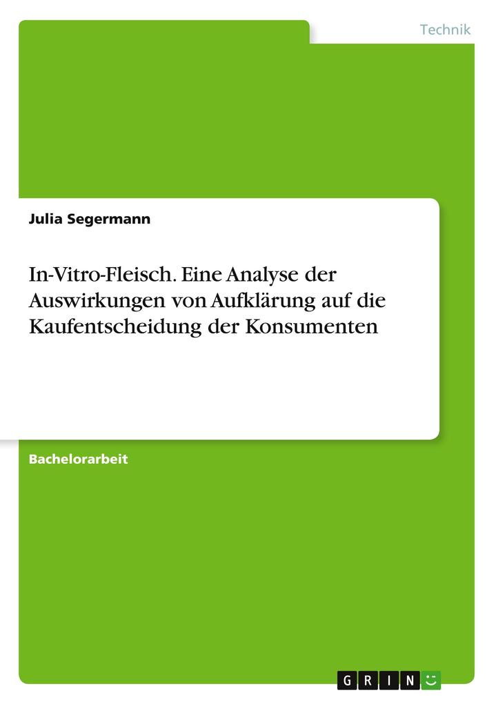 Bachelorarbeit aus dem Jahr 2020 im Fachbereich Lebensmitteltechnologie, Note: 1,7, SRH Hochschule Riedlingen, Sprache: Deutsch, Abstract: Im Rahmen der vorliegenden Arbeit soll der aktuelle Wissensstand und die Akzeptanz der Konsumenten in Deutschland bezüglich In-Vitro-Fleisch (IVF) untersucht werden. Zudem soll ermittelt werden, ob die Akzeptanz der Verbraucher durch Aufklärung positiv beeinflusst werden kann. Die Erkenntnisse können Unternehmen dabei helfen, ihre Aufklärungsarbeit und Marketingstrategie auf die Bedürfnisse potenzieller Verbraucher auszurichten, um einen erfolgreichen Markteintritt zu gestalten.