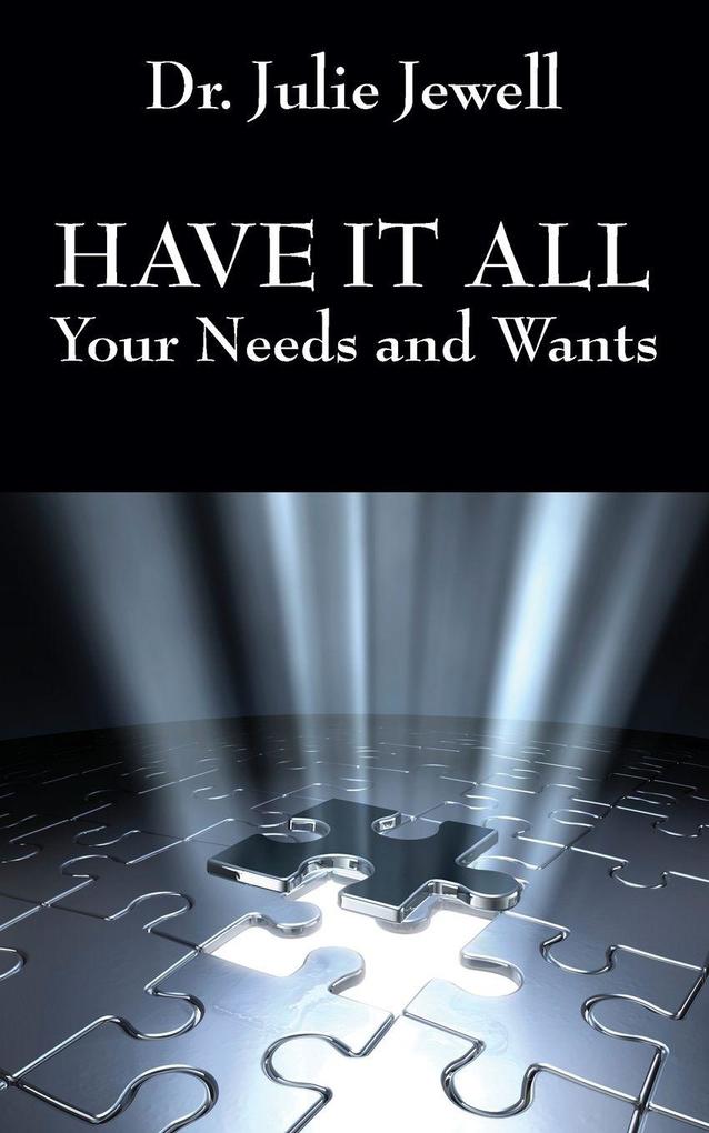 HAVE IT ALL: Your Needs and Wants...If you are unsure of what you want out of life or don't know how to get it then this book can help. This book gives you the steps necessary to discover what you want while providing you a step by step guide to achieving it all. Dr. Jewell gives you practical ideas on how to achieve your goals while giving you real life examples you can implement into your life. "Remember there will be hard times in life, struggles, and difficulties, but out of the sadness, hard work, and boring tasks grow the rewards of life. You see, sticking with the task of creating your dreams allows you the ability to achieve them. It is not the hour you spend, the week you work, or the night you stay up late. It is all of that and more that enables you to create your desires. It is the smallest of tasks that may be your greatest achievement." Dr. Julie Jewell provides a guidebook in determining what your needs, wants and deal breakers are. She addresses the things you need to change your life such as support, self-esteem, goals and a plan to achieve your goals. She introduces you to saving money and budgeting while looking into visualizing, dream boards and even prayer as a way to get you in control of your life. Dr. Jewell encourages you to relook at your life by writing thank you notes, asking for what you want, and networking. About the Author - Dr. Julie Jewell is an accomplished professional teaching in higher education, an international presenter and researcher. She works as a professor of business, is a motivational speaker and business consultant. For more information or to contact the author, visit www.ActiveBusinessTrainer.com, P.O. Box 2922 Cedar Rapids, IA 52406. Availability: HAVE IT ALL: Your Needs and Wants will be available Spring 2013 on-line in paperback through Amazon and Barnes and Noble and at www.outskirtspress.com/bookstore for a maximum trade discount in quantities of ten or more. Outskirts Press, Inc., 10940 S. Parker Rd. - 515, Park
